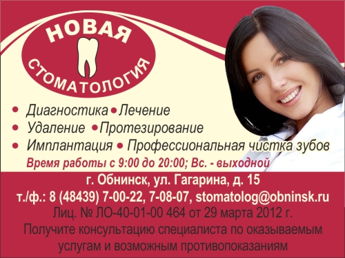 Адрес: г. Обнинск, ул. Гагарина, 13 Телефон: (48439) 7-00-22
